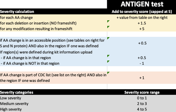 The following tables break down the method used to calculate the severity scoring for an Antigen Assay on ROSALIND. If you would like more information, please feel free to contact support@rosalind.bio