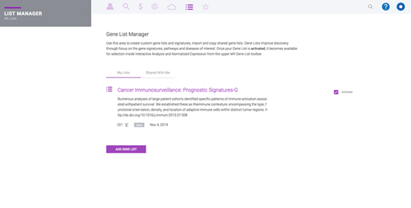 To add a new gene list, click the Add Gene List button at the bottom of the "My Lists" tab.