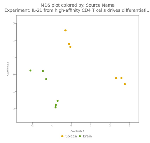 Defined attributes will appear on the Experiment Summary and QC page after your experiment has launched and processed. Multiple QC visualizations, including the MDS plot, Sample Correlation heatmap, NanoString Cell Type Profiler (if applicable) will annotate attribute information to help identify potential outliers and visualize your data according to your different attributes.